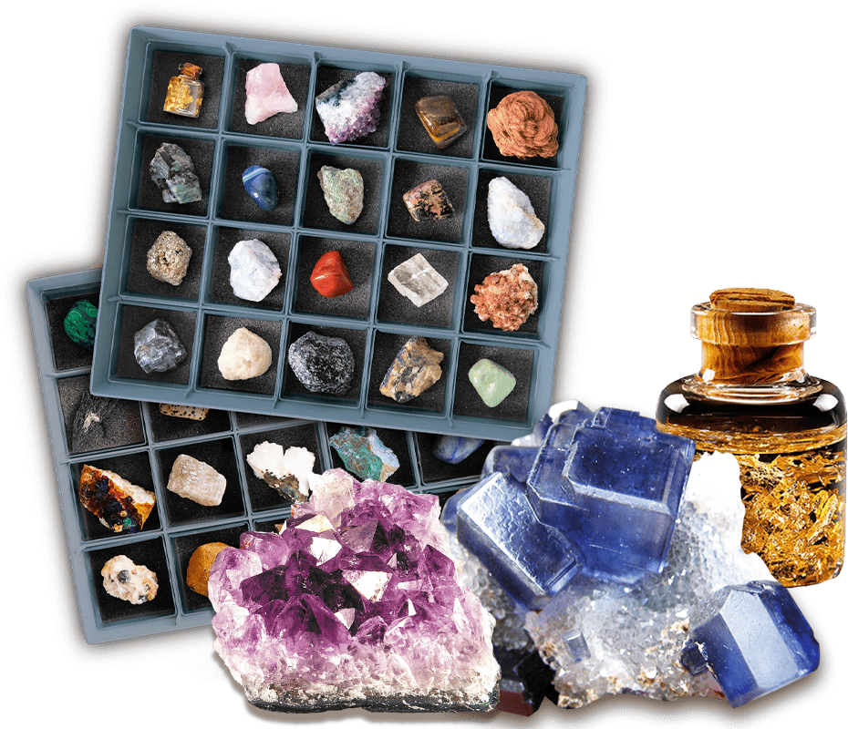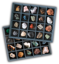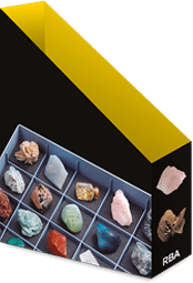 A alla Z, riceverai anche gli ESPOSITORI per custodire i minerali, i RACCOGLITORI e le ETICHETTE per catalogare la tua collezione.